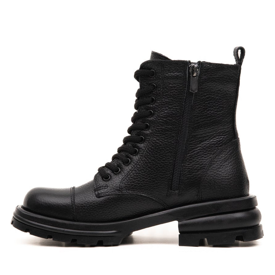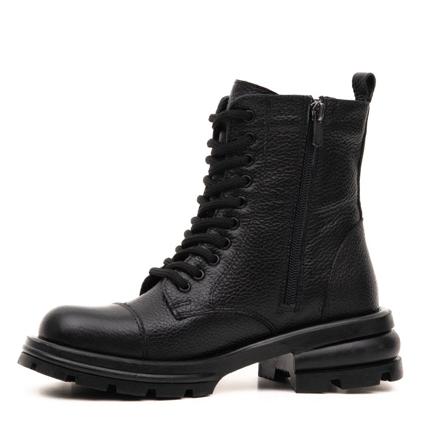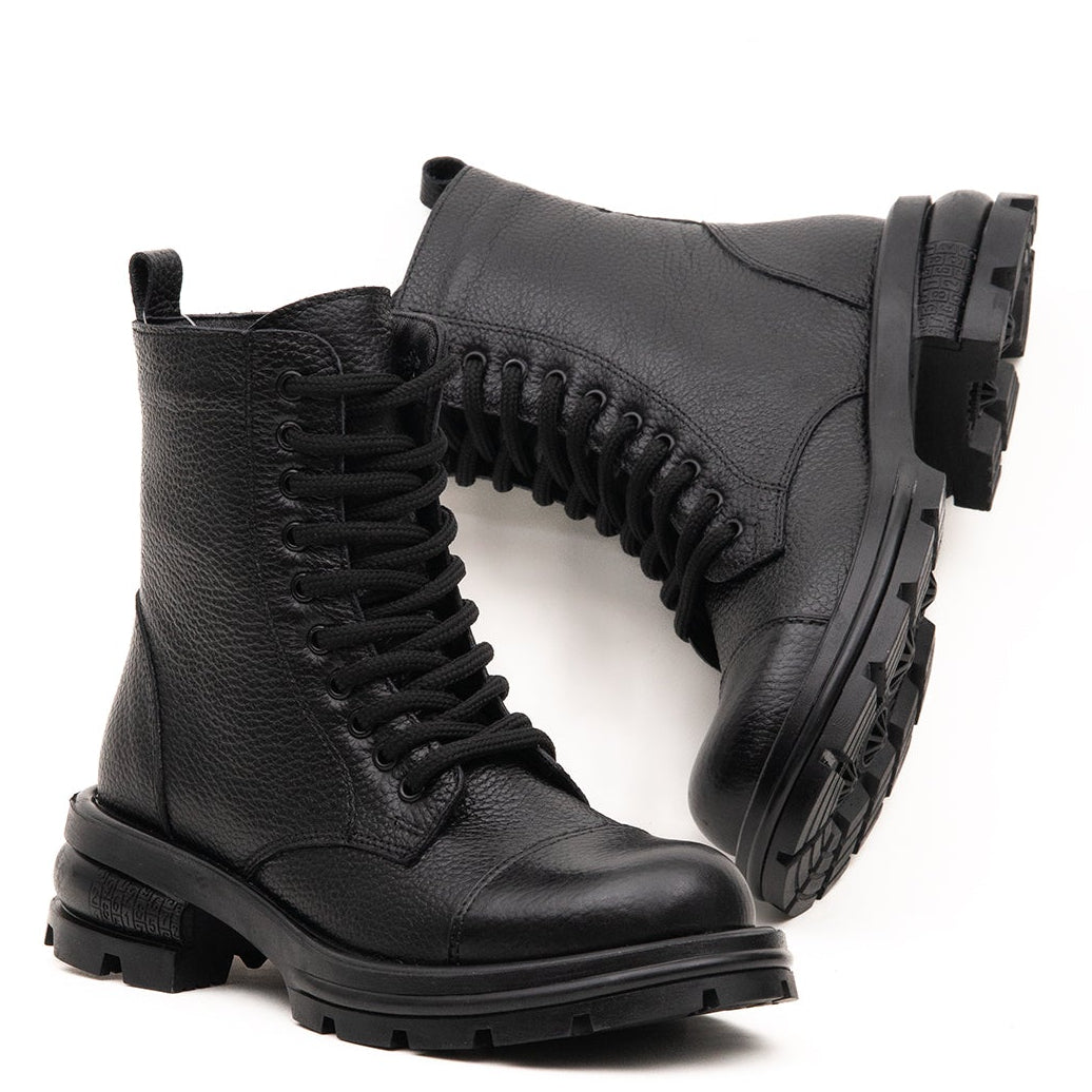Hakiki baskılı deri üretilmiş olan postal bot, kalın tabanı ile hem şık hem de rahat bir kullanım sunar.- Bağcıklı olmasının yanısıra fermuarlu yapısı ile kolay bir kullanım sunar. Klasik ve zarif görünümüyle her stile uyum sağlar. -Soğuk havalarda sıcacık tutacak kaliteli malzemelerden üretilmiştir.