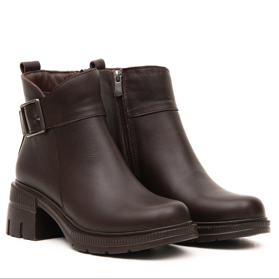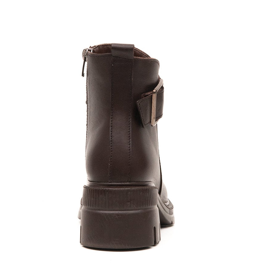 Hakiki Deri Kaymaz Kauçuk Topuklu Toka Detaylı Bot