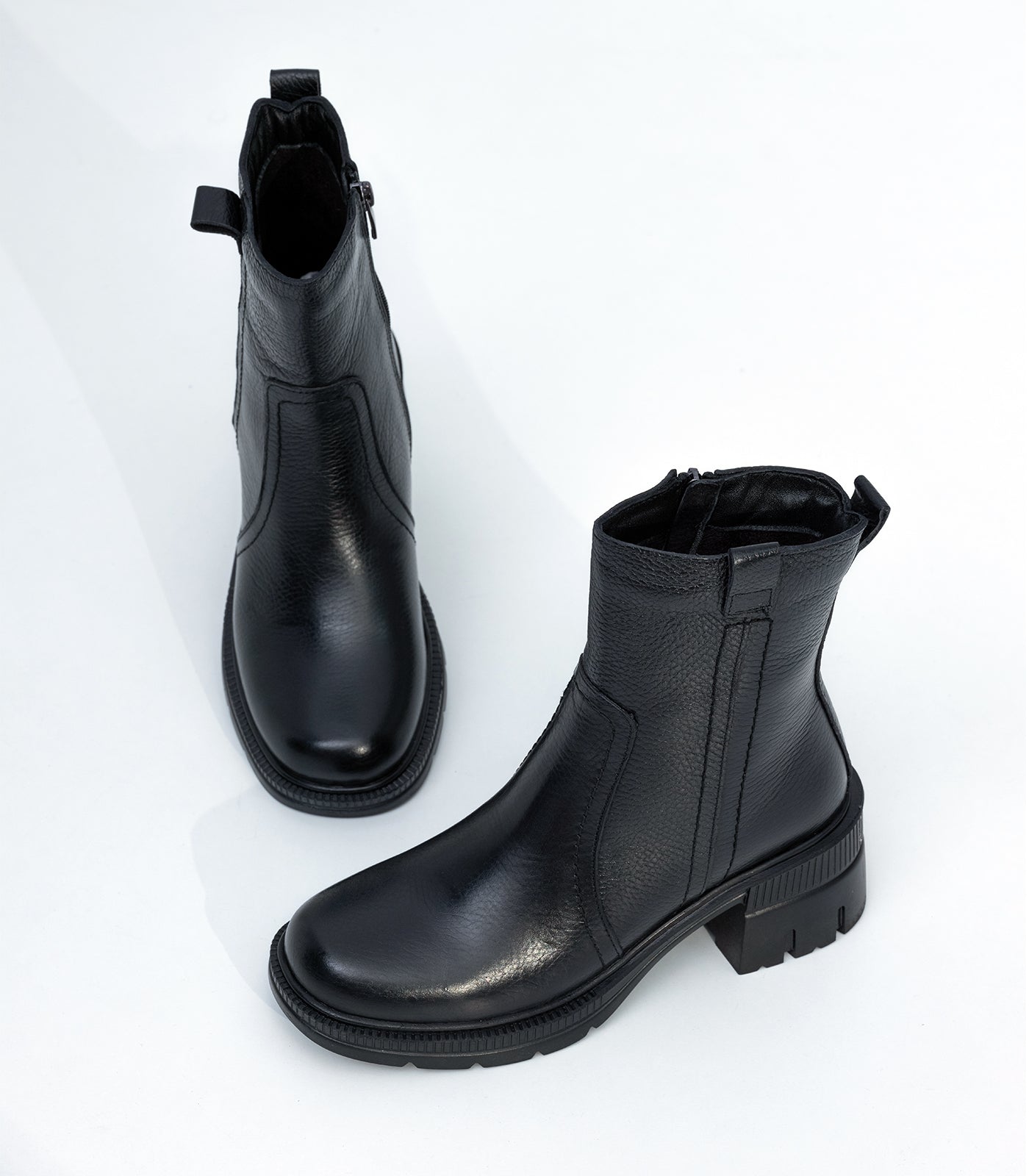 Hakiki Deri Kalin Topuk Fermuarli Bot